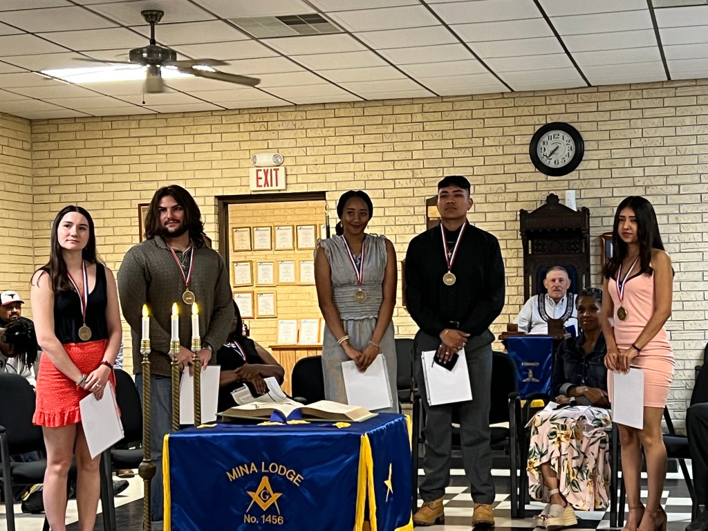 Each year Mina Masonic Lodge No. 1456 presents a total of 5 scholarships to deserving seniors from Bastrop High School, Cedar Creek High School and to the Colorado River Collegiate Academy (CRCA).